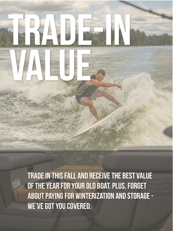 Trade in this fall and receive the best value of the year for your old boat. Plus, forget about paying for winterization and storage - we've got you covered.